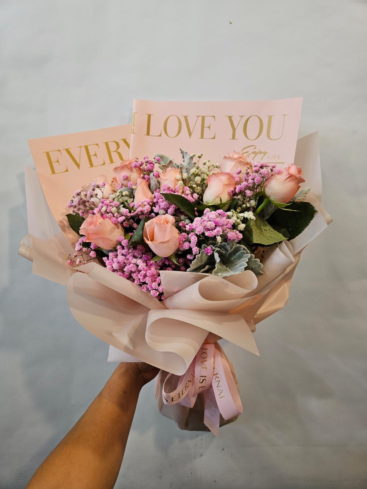 玫瑰花 淺粉 (11枝) 星星花